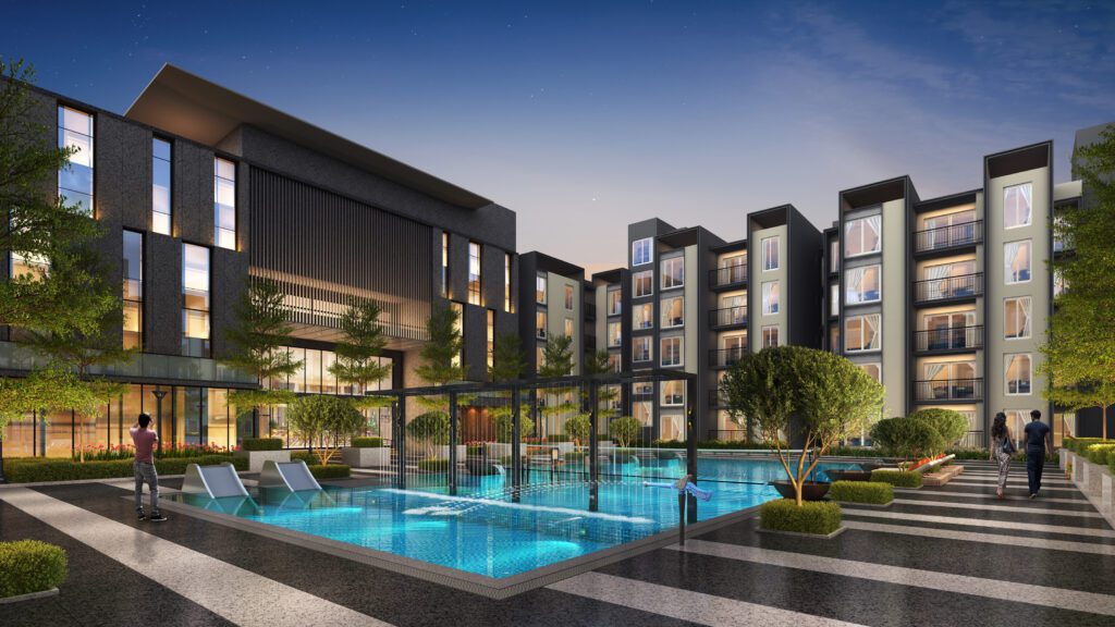 The colour palette and design of the recreational spaces and club facilities are carefully chosen to make an ideal community for those who value a nature-filled lifestyle. Additionally, apartments have ample balconies to provide outdoor living spaces for families and children to connect through recreational activities.