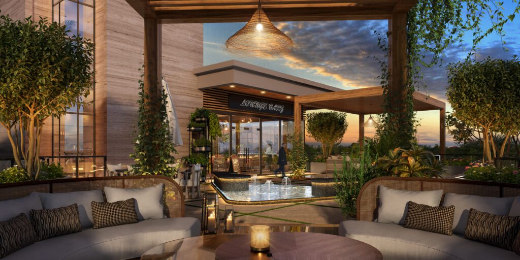 Inspired by the charm of street-side eateries, lively cabanas are designed to be part of the façade, giving diners an elevated yet connected experience. The terraces bring the energy of the interior dining spaces outdoors, making the activity within a spectacle for the public while ensuring a comfortable and exclusive experience for diners.