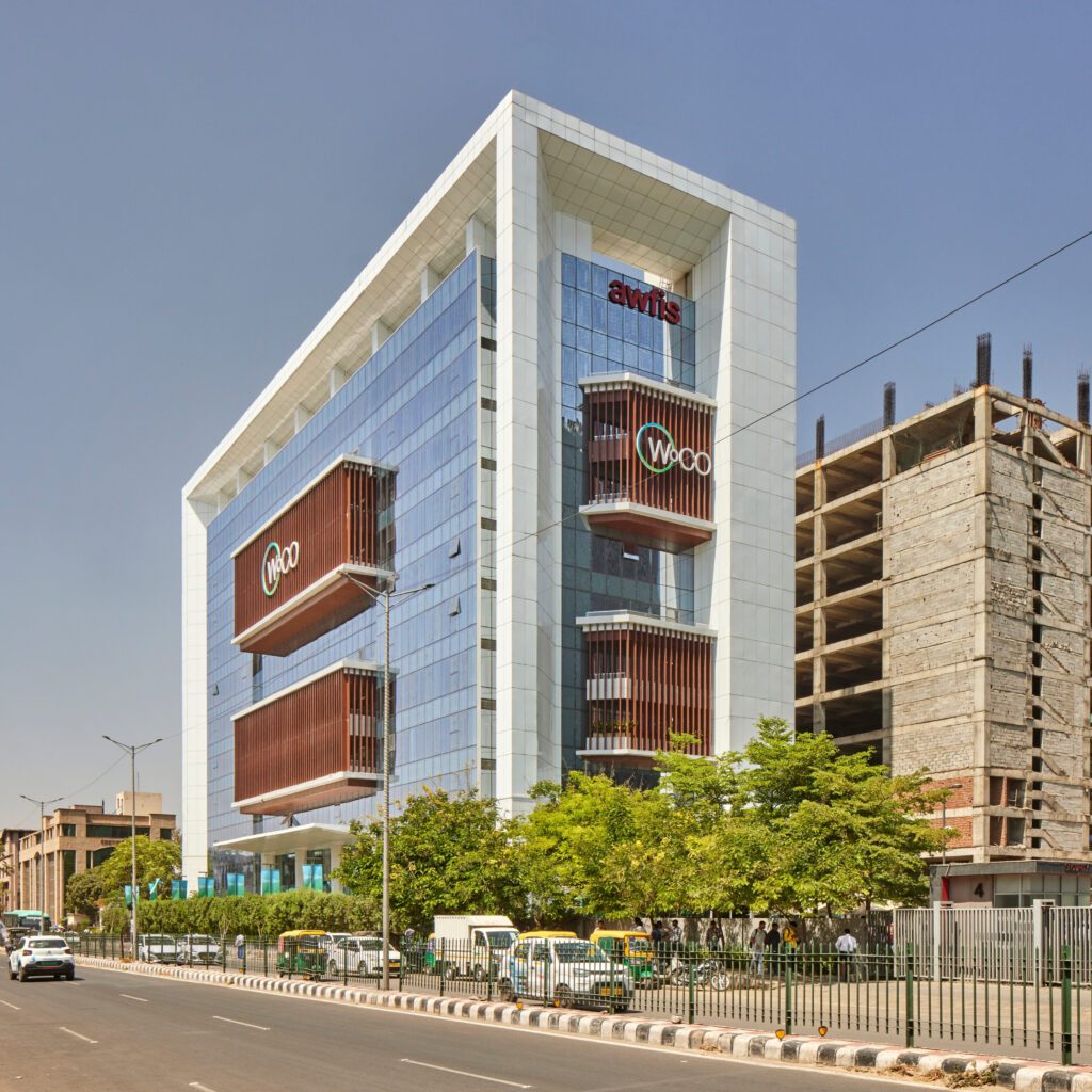 WoCO One tower rises to nine floors and a terrace above ground and extends to a spacious triple-level basement structure below ground. Spread over a 2-lakh sq. ft. area, WoCO One advocates ‘passive sustainability’ and new-age workplace design to concretise its standing in the fast-evolving city of Gurugram. A strategic mix of active and passive sustainability measures grants the design an IGBC Platinum certification.