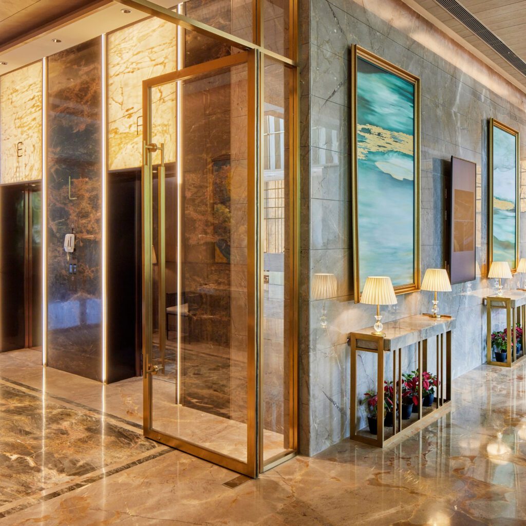 The concept of ease of working is integrated into the veins of the building. For instance, to ease the rush-hour internal commute, streamlined Vertical Circulation—DCLs or Destination-Controlled-Lifts are used to reduce the waiting times by providing stoppages on each floor. A set of eight elevator clusters adds to the convenience.